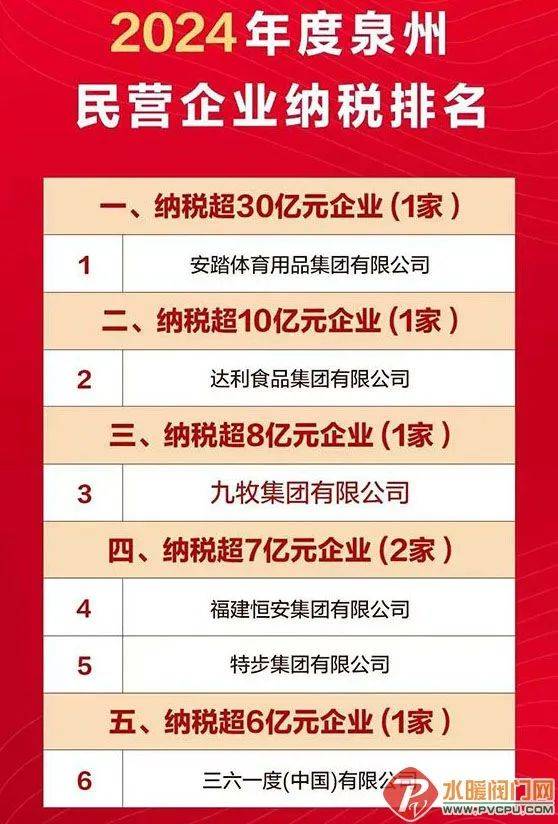2月5日,2025年泉州市民营经济发展大会上,泉州市表彰2024年度民企纳税百强。九牧集团有限公司纳税超8亿元,成功上榜,荣列榜单第三。