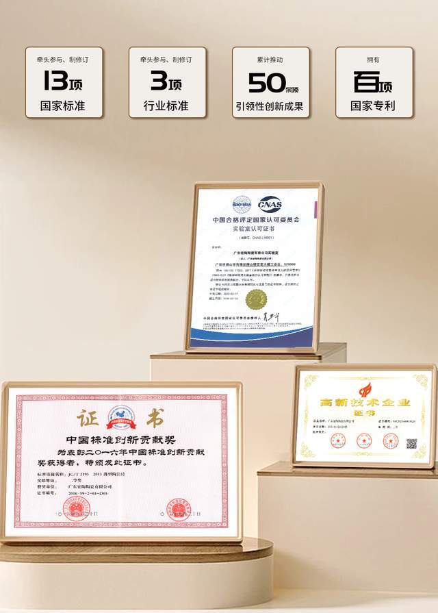 聚焦光感美学、质感升级、防滑安全等前沿领域,突破50项重大科技成果,其中16项达国际领先水平,并高效转化应用。累计拥有68项授权专利,深度赋能产品核心性能:超强耐磨、安全易洁、耐久环保、美学适配。产品实测性能远超国家标准,为“好房子”构筑安全耐久、超低维护的基石,奠定“广东好建材”硬实力!