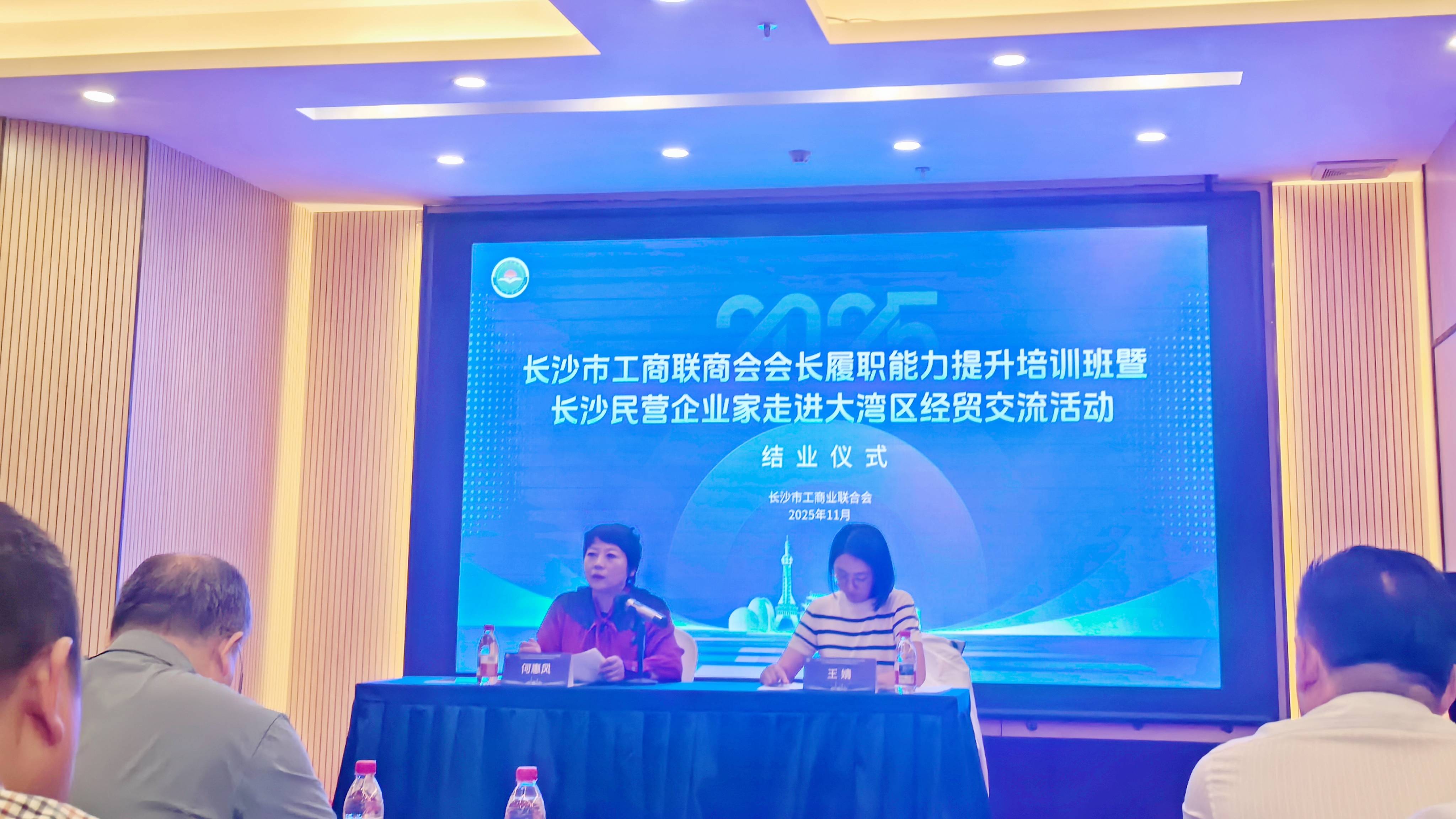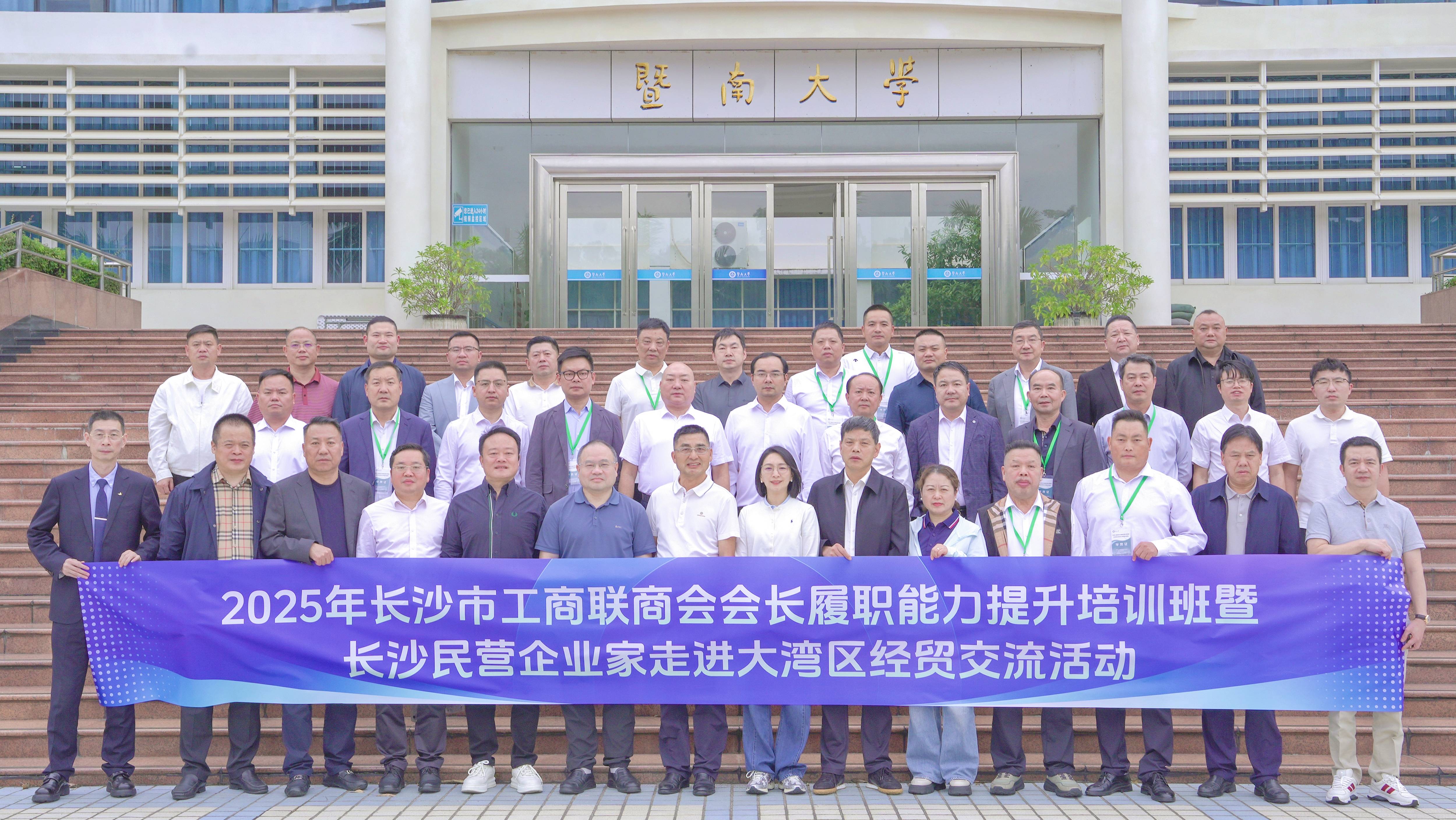 本网讯为深入学习贯彻党的二十届四中全会精神,强化商会建设效能,凝聚民营经济发展合力,11月2日至7日,长沙市工商联在暨南大学珠海校区成功举办商会会长履职能力提升培训班,并同步开展长沙民营企业家走进大湾区经贸交流活动。长沙市委统战部副部长、市工商联党组书记何惠风,市工商联党组成员、副主席王婧出席开班仪式和结业仪式。长沙市工商联会员处处长陈鹏科、研究室副主任龚清、会员服务中心副主任黄叶欣,以及长沙市湘潭商会会长谢建军等42位在长异地商会会长参加。