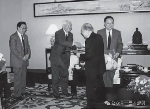 20 世纪 90 年代拜谒台北故宫秦孝仪院长(左一李辉柄,左二耿宝昌,左三秦孝仪)