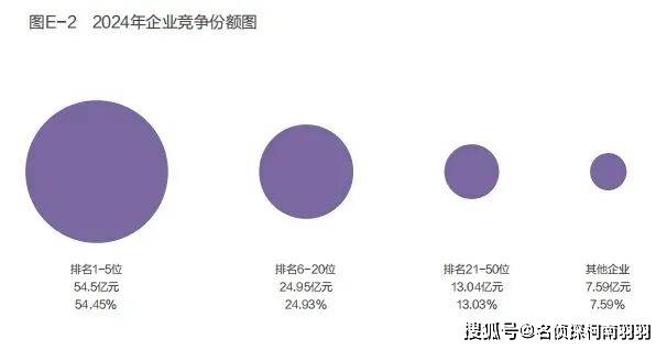 2024年,实收拍品款(截至2025年5月实际收到的2024年成交拍品的货款)排名前5名企业成交额合计54.5亿元,占据行业54.45%份额,同比下降4.81个百分点。成交额逾1亿元的企业有17家,与上年持平。