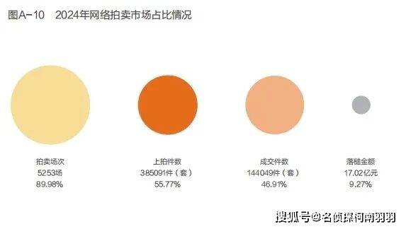 2024年,纯网络拍卖上拍38.51万件,成交14.40万件。纯网络拍卖更趋于常态化。10万元以下成交拍品数量占比上升了0.5个百分点,为90.28%。拍品均价由上年的8.29万元下降至5.98万元。