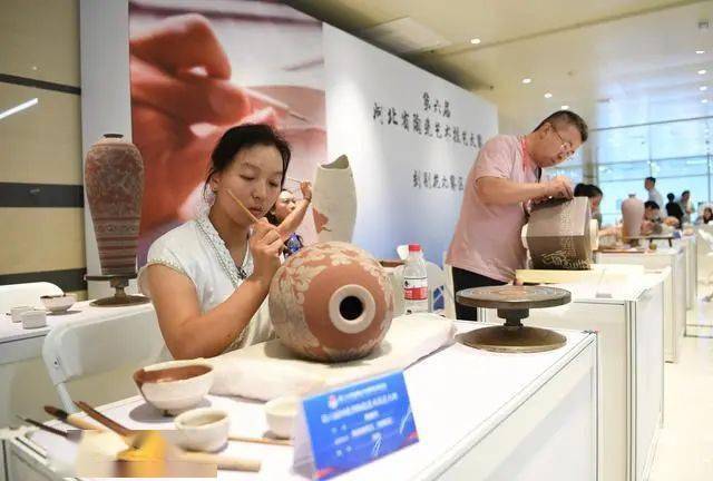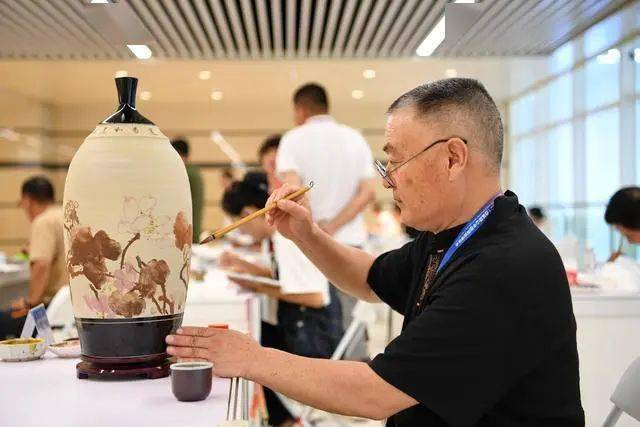 9月16日,在第二十四届唐山中国陶瓷博览会现场,参加陶瓷艺术技艺大赛的选手在比赛中。新华社记者 牟宇 摄