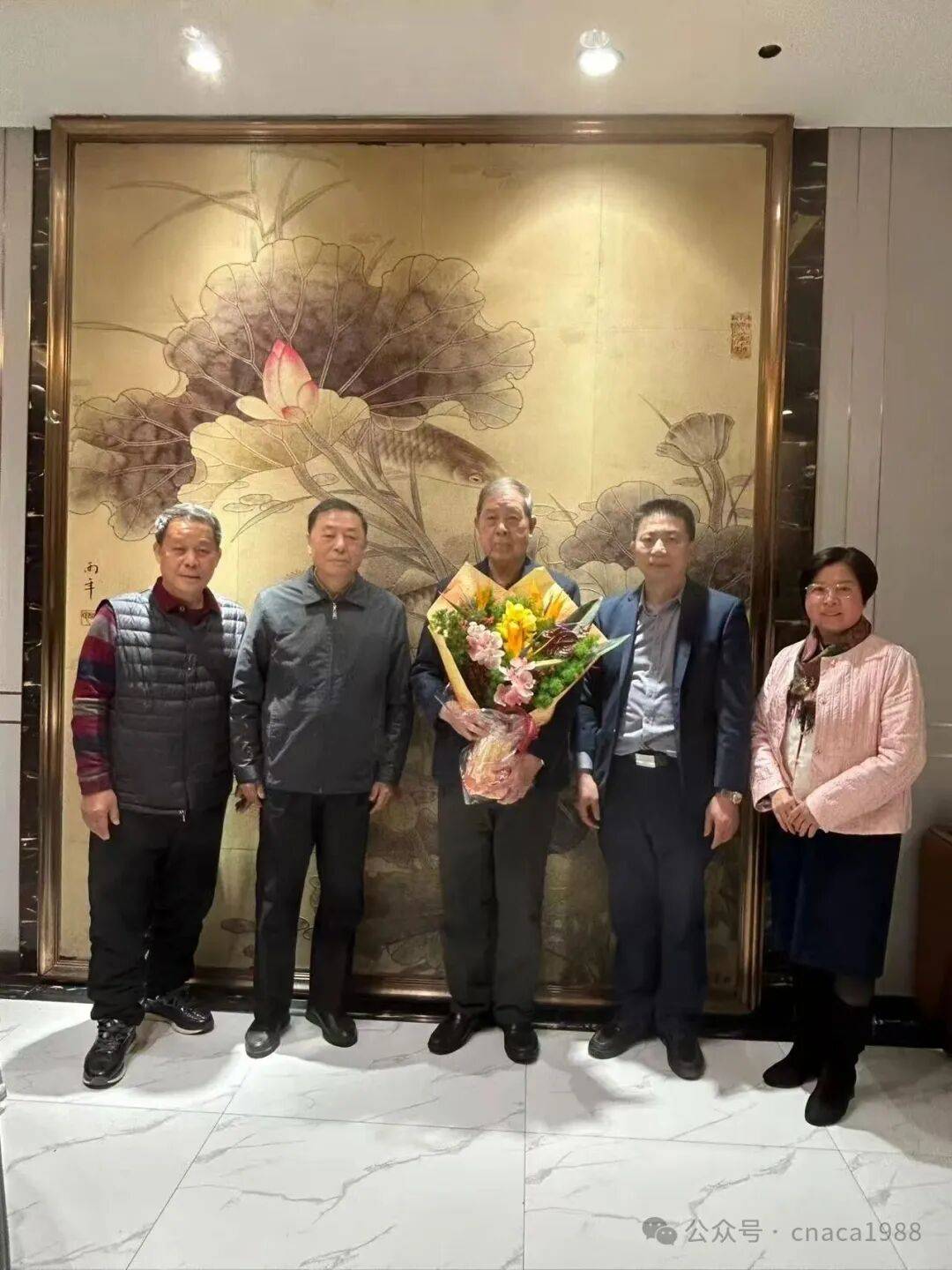 中国工艺美术协会常务副会长张红,中国工艺美术协会顾问王树忠等会同北京、河北、广东、浙江等省(市)工艺美术协会,亲切看望陈嘉棠、王习三、赵锡祥、宋世义、王永明等五位工艺美术大师前辈,代表徐念沙会长和中国工艺美术协会,向老一辈大师致以诚挚的问候和新春祝福;并为大师们献上鲜花,以及特请中国工艺美术大师傅绍相定制的马年铜雕纪念品。